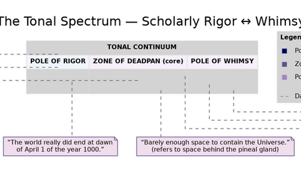 There are so many aspects of this worth considering—from the original notes the Grimms made in their version of the story, and how Lafferty writes over them, to how he brings together his great historical imaginers, Arpad Arutinov and Atrox Fabulinus, here in their closest partnership. There are also passages in Sindbad: The 13th Voyage (1989) that are important: